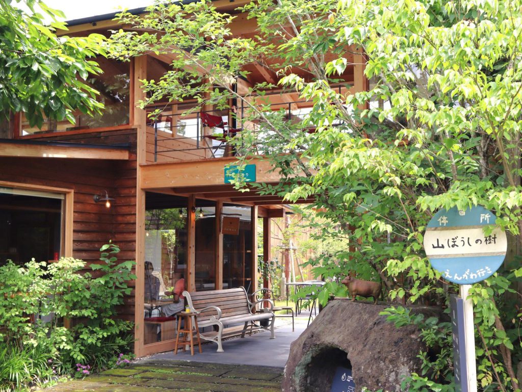 位於上益城郡甲佐町的「山帽子之樹」,是活用築140年古民家、佔地約400坪的廣大咖啡廳兼商店。這家咖啡廳最值得一提的是,它由設計熊本・黑川溫泉高級旅館「竹笛」的建築師操刀。包括主屋在內共有6~7棟建築散落其中,各自散發出獨特的氛圍。